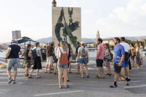 Program kreće u četvrtak 28. kolovoza na Visu gdje će Srećko Horvat predstaviti rad viške “Škole autonomije” koja, pored ostalih aktivnosti, kroz atipične aturističke ture razvija praktično iščitavanje kompleksne mreže značenja i alternativnih tumačenja prošlosti  i moguće budućnosti Mediterana. Polazeći od pitanja ima li društva bez prirode i kako društvo utječe na prirodu, predavanje će nas povesti na putovanje od ljudske prapovijesti do današnje klimatske krize i teorija antropocena i kapitalocena. Uz predstavljanje rada “Škole autonomije”, polaznice/i će se na licu mjesta upoznati s promišljanjem odnosa prirode i društva i praksom održivog razvoja uz kombinaciju tradicionalnih vještina i suvremenih tehnologija.  Daša Gazde obrađuje temu stvaranja novih i/ili proširenja postojećih zelenih površina u urbanim strukturama u okviru postojećih birokratskih procedura – pokušavajući dokučiti nalazi li se njihova realizacija u domeni mitova. Predavanje će se održati 29.8. u 19 sati u Društvu arhitekata Splita. 30.8. Jere Kuzmanić povest će nas u zaigrano lutanje istokom grada inspirano radom Guya Deborda i francuskih situacionista, i dérive metodom koja naglašava slučajne susrete, psihogeografiju i otvorenost prema nepredviđenom – ovo nije obična šetnja, već svjesno istraživanje urbanog tkiva kroz koje se otkrivaju skriveni narativi, kontradikcije i moguće budućnosti. U još jednoj vođenoj turi, 31.8. Tea Truta otkrit će nam nove slojeve Kaštelanskog zaljeva – povijest istočnog dijela čita se kao kronika suživota čovjeka i prostora, prirode i industrije. Tijekom više od dvije tisuće godina, ovaj je kraj bio kontinuirano naseljen zahvaljujući jedinstvenoj kombinaciji geografskih i hidroloških pogodnosti. Danas, u ovom postindustrijskom krajoliku, teško je i nabrojati sve posljedice koje su ostavile ugašene tvornice i odgađanje njihove sanacije. Čitavo područje ima određeni stupanj industrijske kontaminacije – okoliš je zagađen, zdravlje narušeno, a krajolik oštećen. Kontekstualizacija okolnosti stanovnika Vranjica i njihova iskustva u tom prostoru upozoravaju na greške, ali i otvaraju prostor za novo čitanje odgovornosti – možda kao početak traženja boljeg modela budućnosti. Vrijeme i mjesto vođenih tura objavit ćemo uskoro!