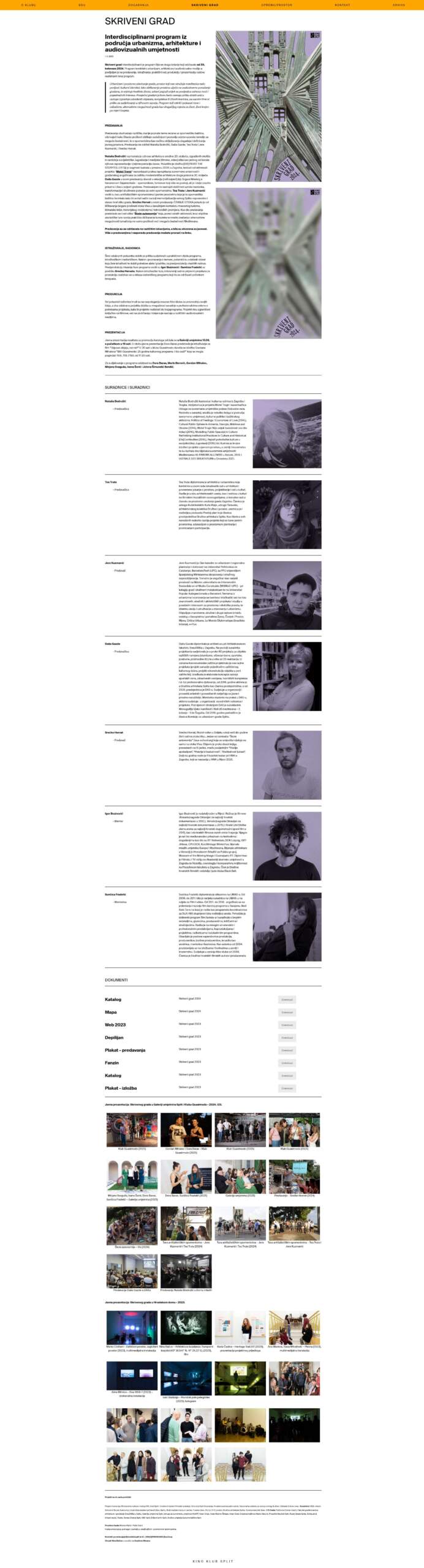 Skriveni grad interdisciplinarni je program koji će se održavati od 28. kolovoza 2025. do kraja godine. Program je podijeljen na predavanja, istraživanje, praktični rad, produkciju i prezentaciju radova realiziranih kroz program, a spaja urbanizam, arhitekturu i audiovizualne medije.